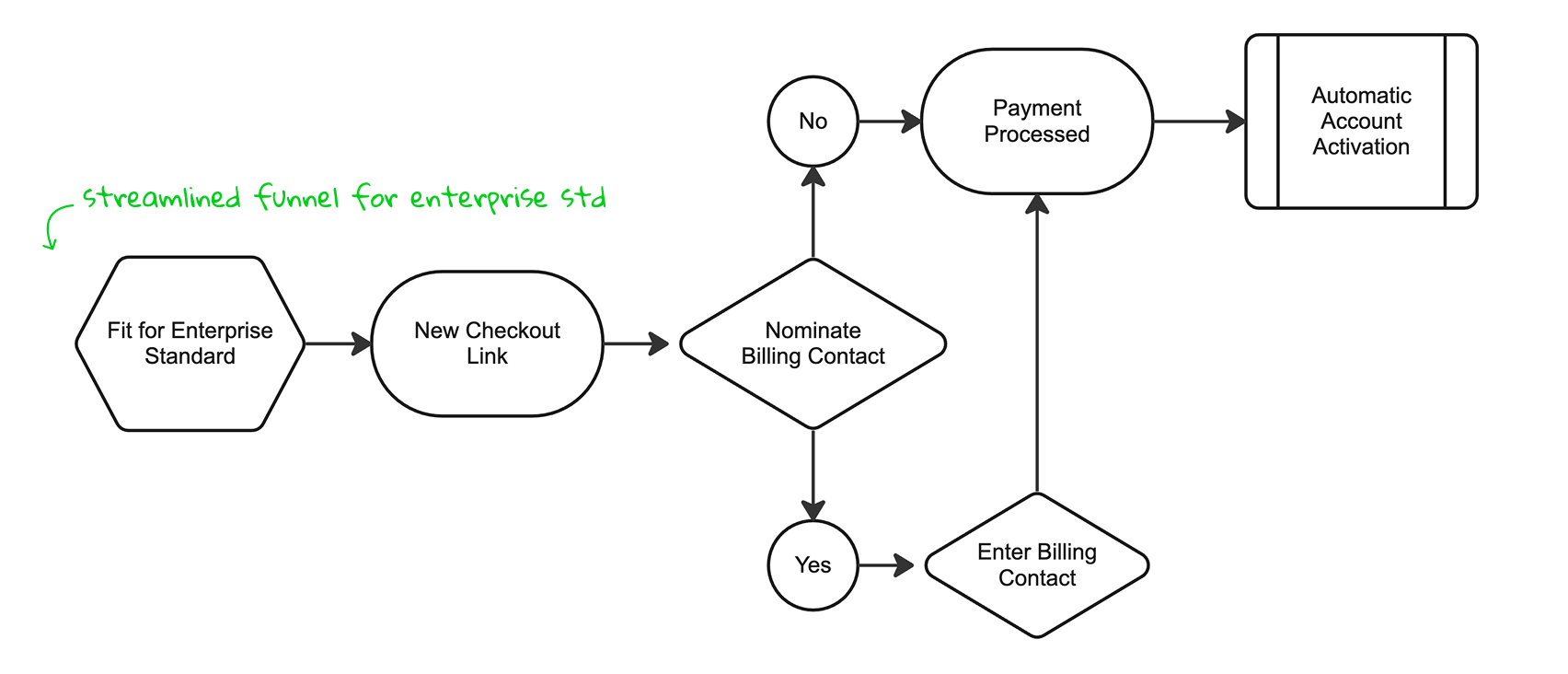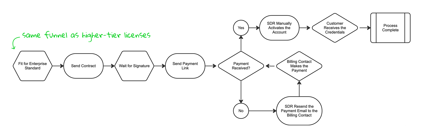Enterprise Standard subscriptions followed the same manual funnel as higher-tier licenses, unnecessarily involving Sales for an off-the-shelf product, creating friction and delaying onboarding.
